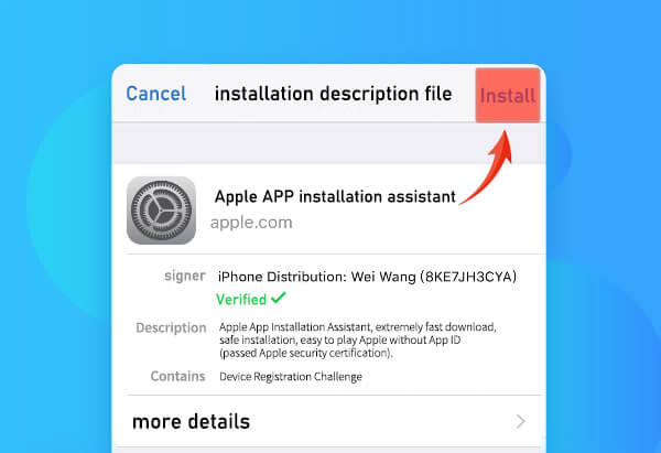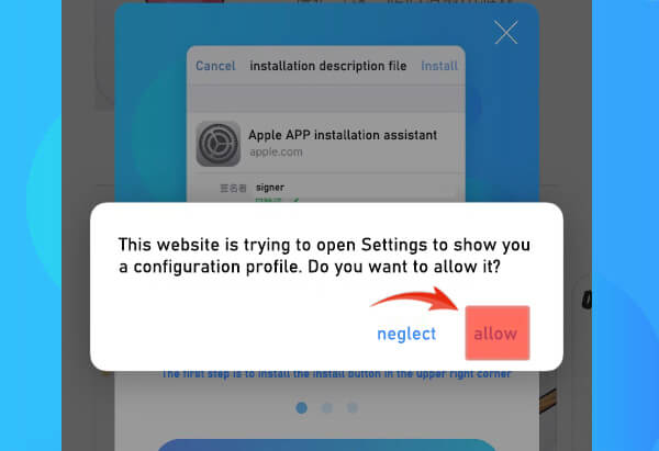 2、IPhone: click Install to return to the desktop. If the download is completed, Click Set >> currency >> Description file >> App>>install